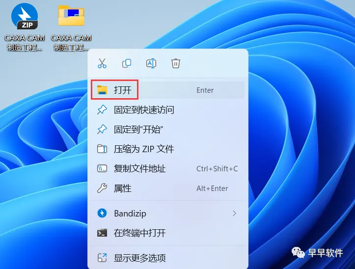 13、回到桌面,右键桌面上的【CAXA CAM制造工程师 2020软件图标】,点击【打开】