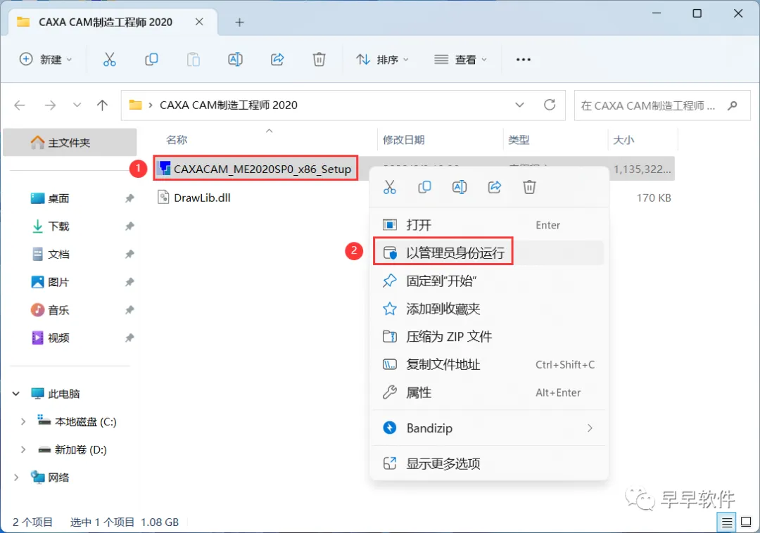 3、找到【CAXACAM_ME2020…】应用程序,右键选择【以管理员身份运行】它