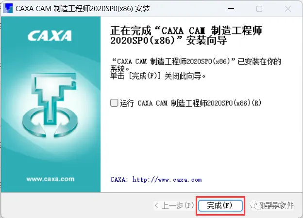 8、不勾选运行CAXA CAM制造工程师 2020,再点击【完成】