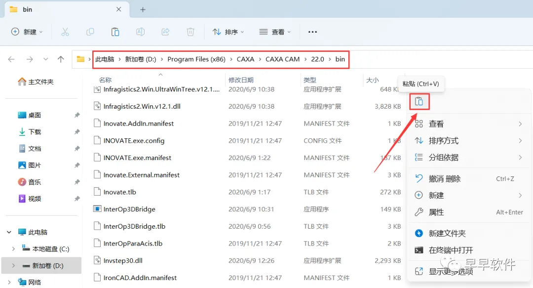 11、右键文件夹的空白处,点击【粘贴按钮】