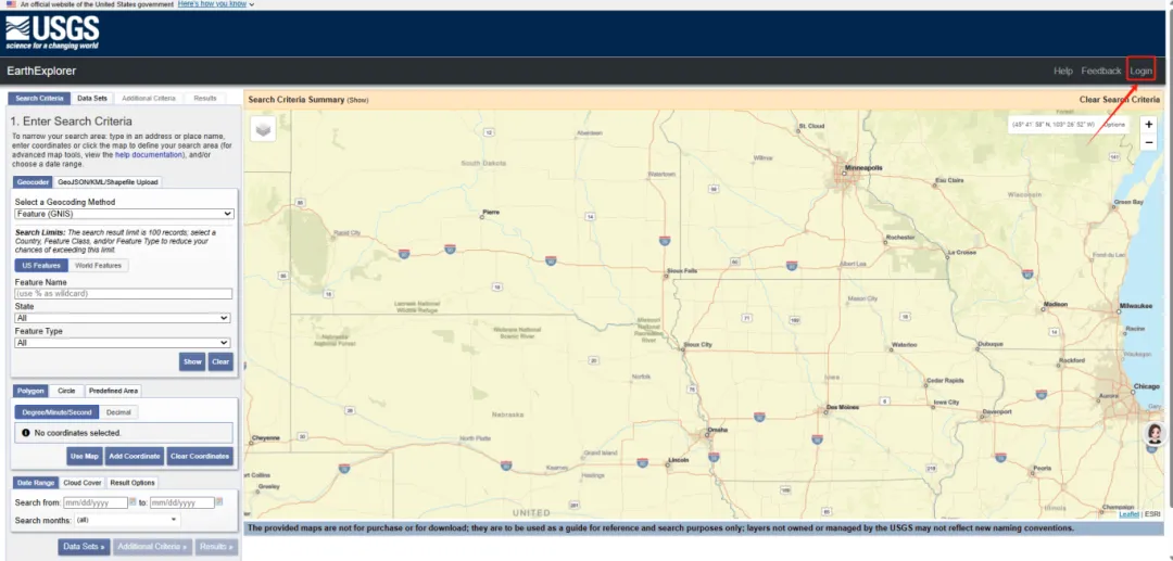 网址:https://earthexplorer.usgs.gov/(需要科学上网才能进去哦)