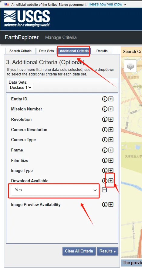 第四,选择“Additional Criteria”,然后找到下面菜单栏的“Download Available”,点击后面的加号,选择“Yes”,最后点击下面的“Results”就可以啦。