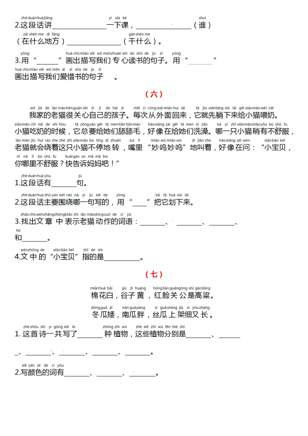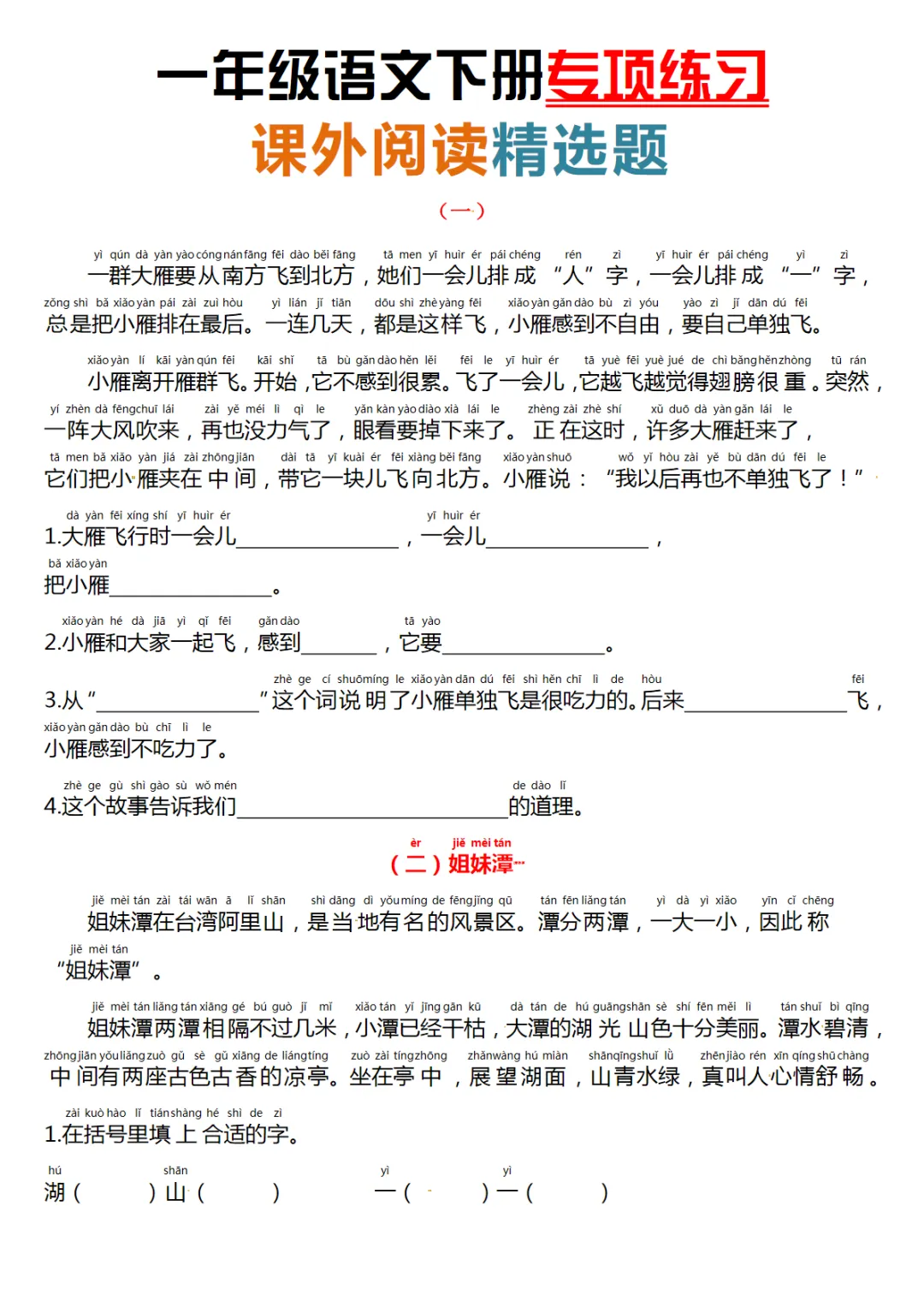 一年级(下)语文课外阅读理解项练习
