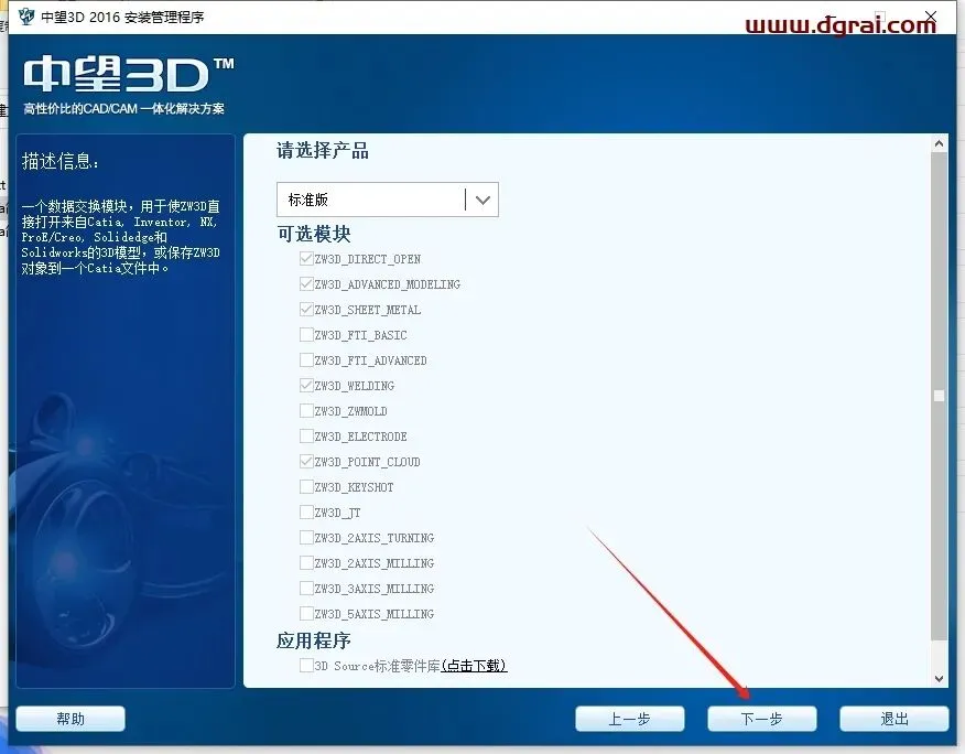 欢迎使用中望CAD安装向导,点击安装