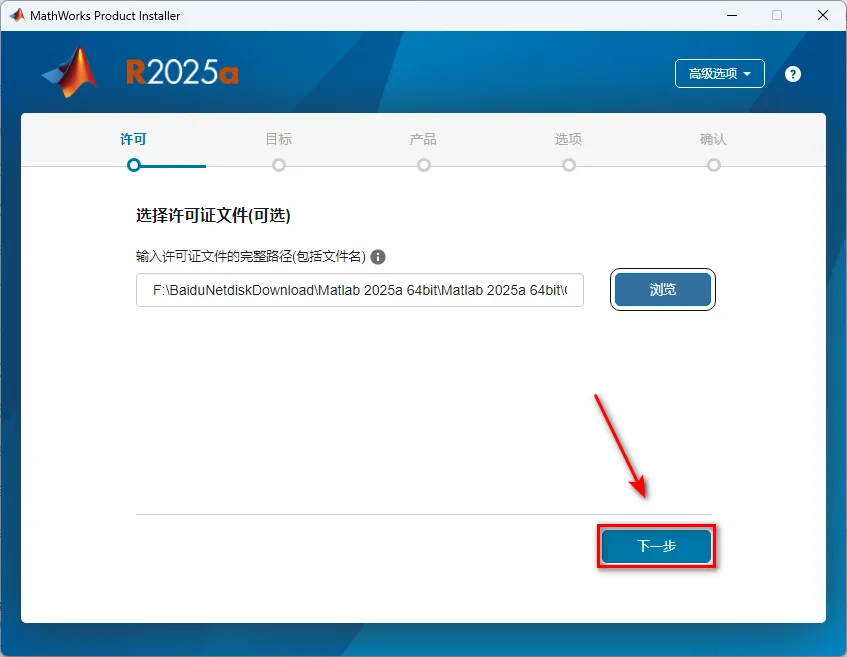 2020版和2025版本安装步骤基本相同,大家参考即可,密钥已作修正 1、鼠标右键解压到“Matlab 2020 a” ![]() 2、双击打开“R2025a_Windows” ![]() 3、选中setup,鼠标右键选择“以管理员身份运行” ![]() 4、点击高级选项,选择“我有文件安装密钥” ![]() 5、选择是,点击“下一步” ![]() 6、在输入文件安装密钥输入: 09806-07443-53955-64350-21751-41297点击“下一步” ![]() 7、点击“浏览”, ![]() 8、在解压后的文件夹Matlab R2020a 64bit文件夹中的【crack】文件夹,选中license_standalone.lic文件,点击“打开”