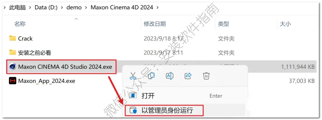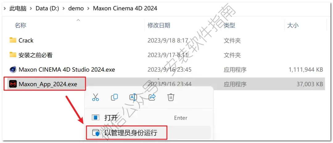 7、返回到之前解压出来的安装包,然后以管理员身份运行如下图程序