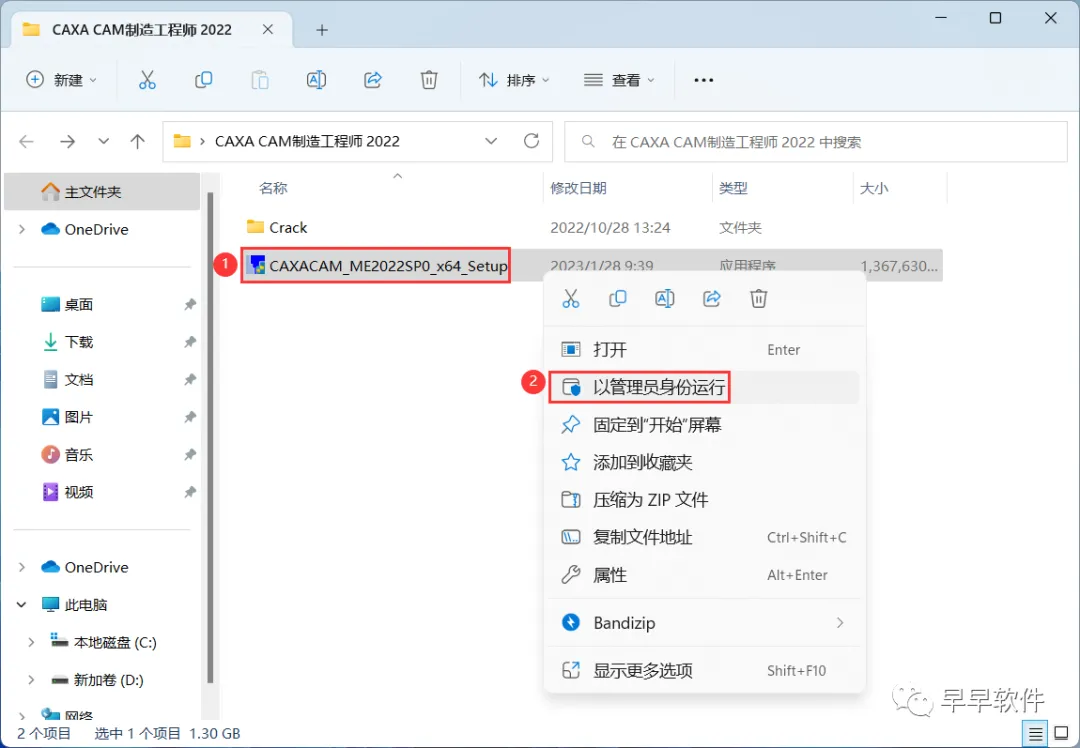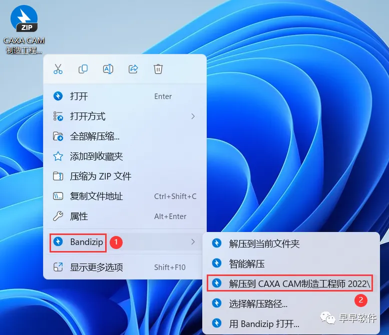 1、下载CAXA CAM制造工程师 2022软件安装包到电脑上,右键选择【解压到CAXA CAM制造工程师 2022\】