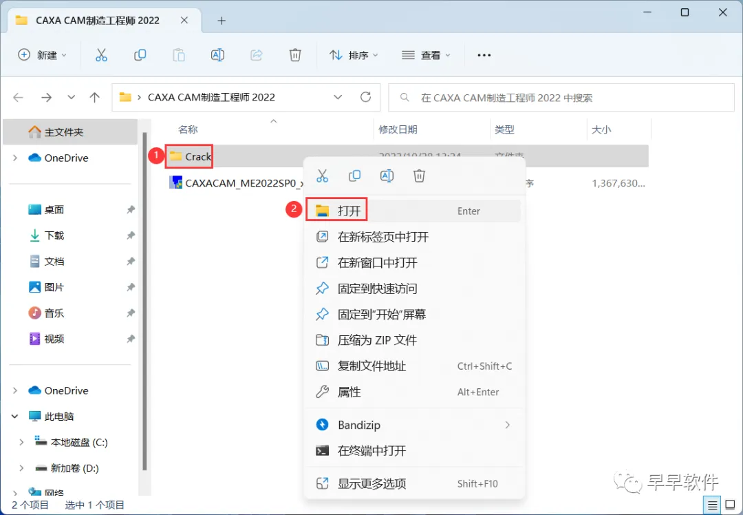 9、回到CAXA CAM数控车 2022文件夹,找到【Crack】文件夹,右键【打开】它