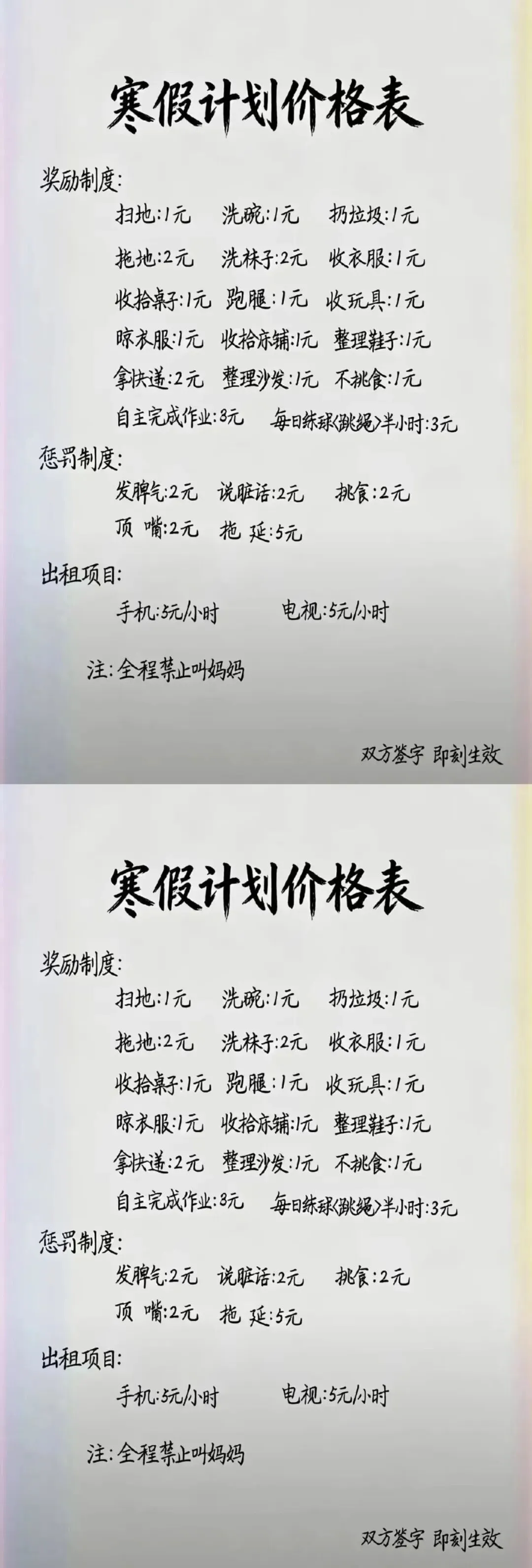 本文内容分享【寒假劳动奖励价格表】免费获取方式👇🏻