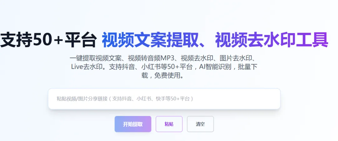 无限免费的视频下载工具,一键下载抖音、快手、小红书等50+平台视频、文案,支持去水印和文案改写.