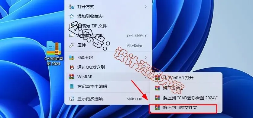 1、下载好安装包,右键选择【解压到当前文件夹】