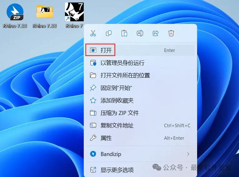 16、回到桌面,右键桌面上的【Rhino 7软件图标】,点击【打开】