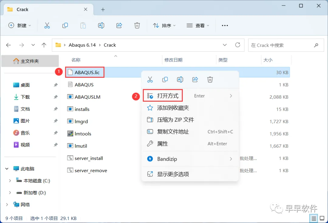 4、找到【ABAQUS.lic】文件,右键点击【打开方式】
