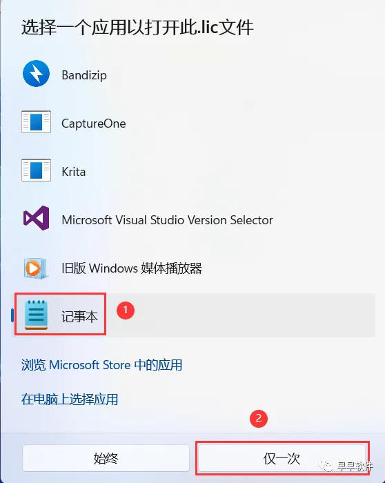 5、选择【记事本】,再点击【仅一次】