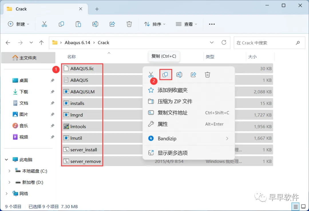 24、回到Crack文件夹,选中全部文件,再右键点击【复制按钮】