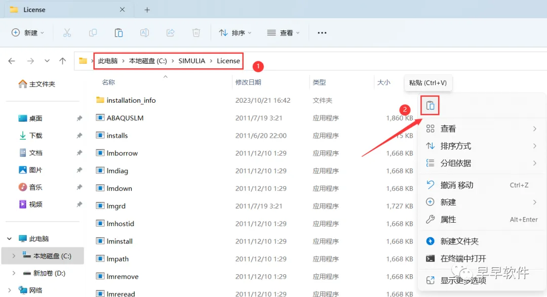 25、打开路径:C:\SIMULIA\License,再右键文件夹的空白处,点击【粘贴按钮】
