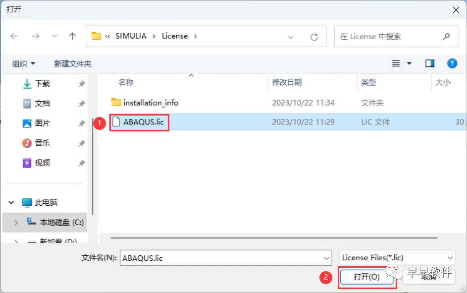 31、选择路径C:\SIMULIA\License文件夹下的【ABAQUS.lic】文件,再点击【打开】