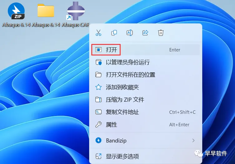 66、回到桌面,右键桌面上的【Abaqus CAE软件图标】,点击【打开】