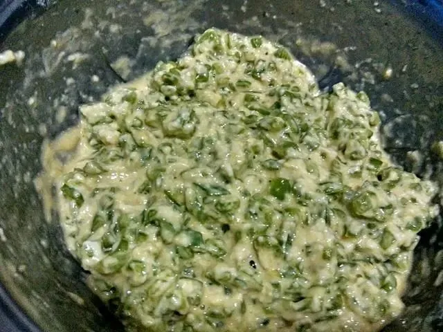 3、 加入适量的面粉,注意面粉不要一次性都倒进去,一点一点去加,加的时候要不断的搅拌。