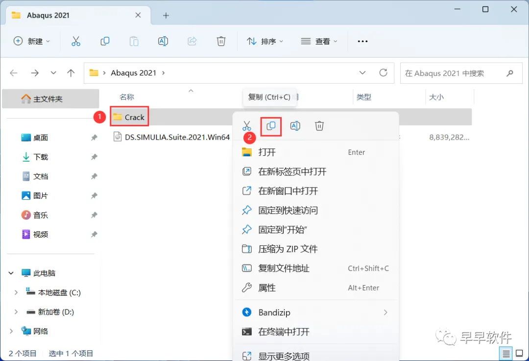 3、找到【Crack】文件夹,右键点击【复制按钮】