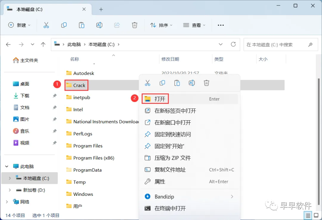 5、找到粘贴的【Crack】文件夹,右键【打开】它