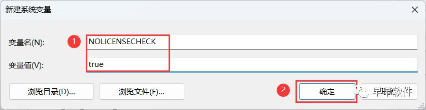 12、变量名输入:NOLICENSECHECK;变量值输入:true,再点击【确定】