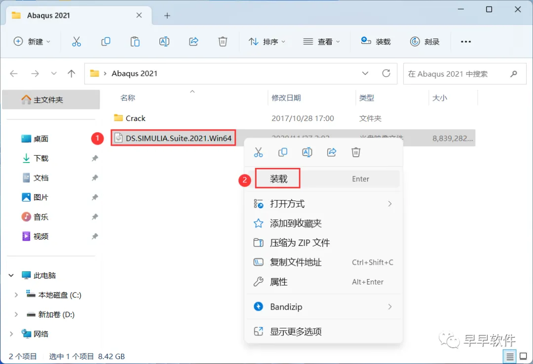 15、回到Abaqus 2021文件夹,找到【DS_SIMULIA.Suite.2021】文件,右键点击【装载】