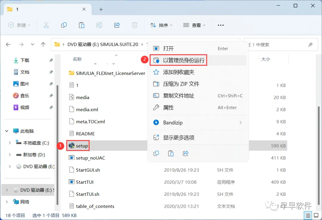 17、找到【setup】应用程序,右键选择【以管理员身份运行】它