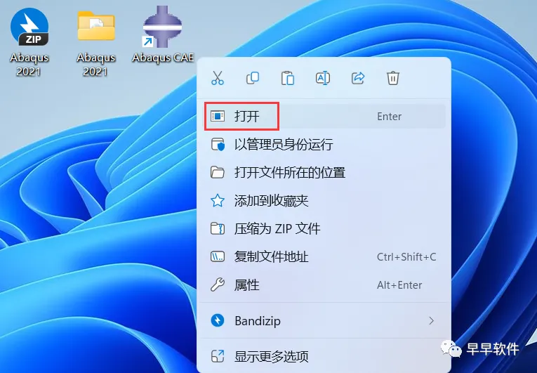60、回到桌面,右键桌面上的【Abaqus CAE软件图标】,点击【打开】