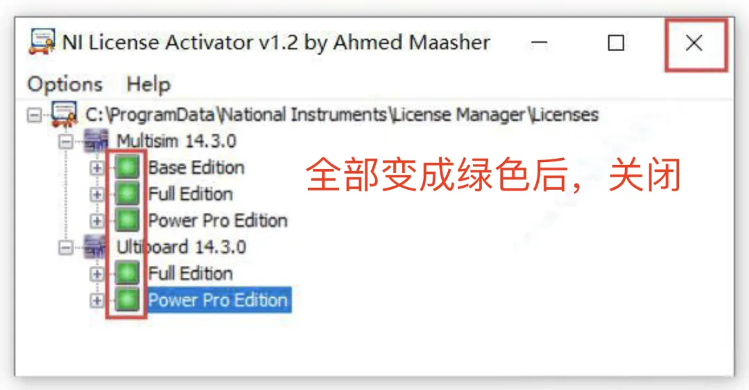 3、全部变为绿色后关闭
