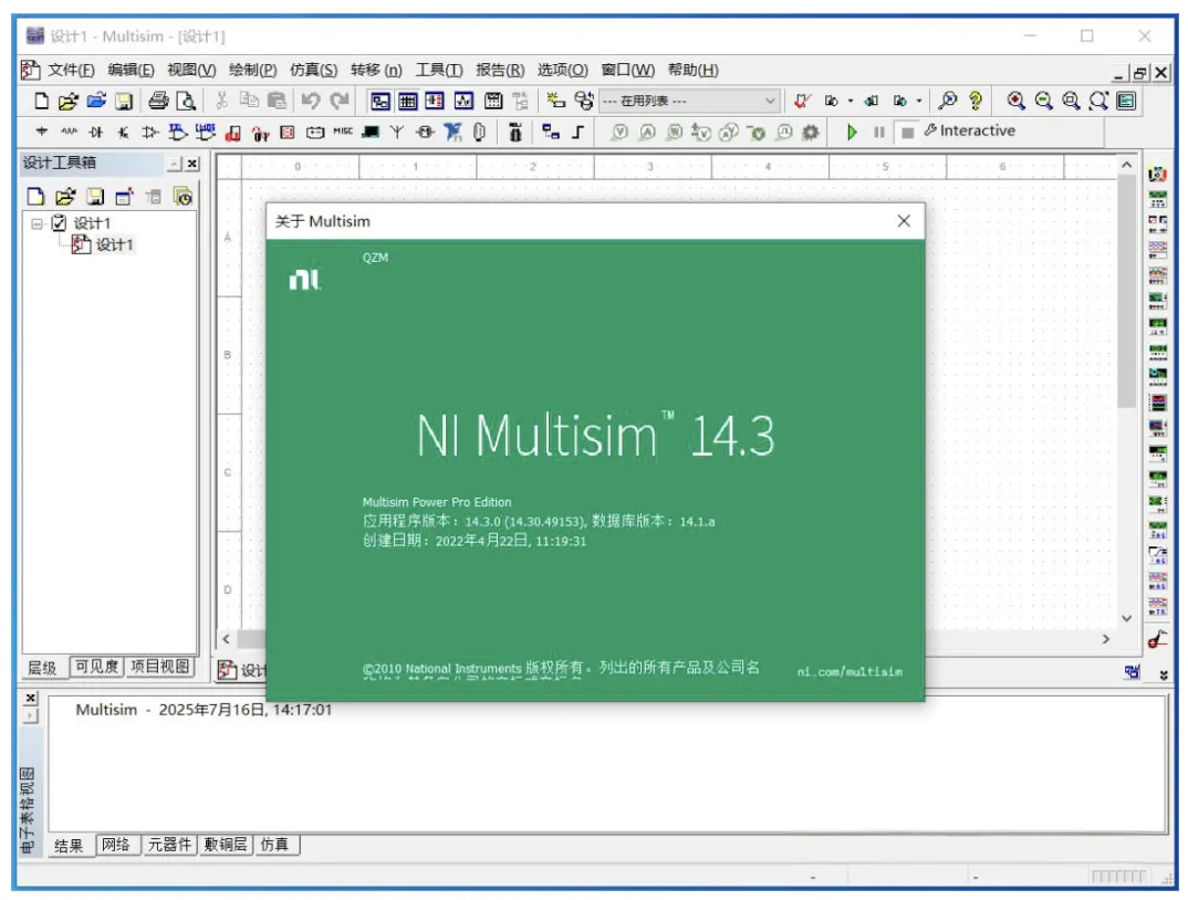 9、完成:双击桌面快捷方式启动软件,即可正常使用汉化版 Multisim 14.3。