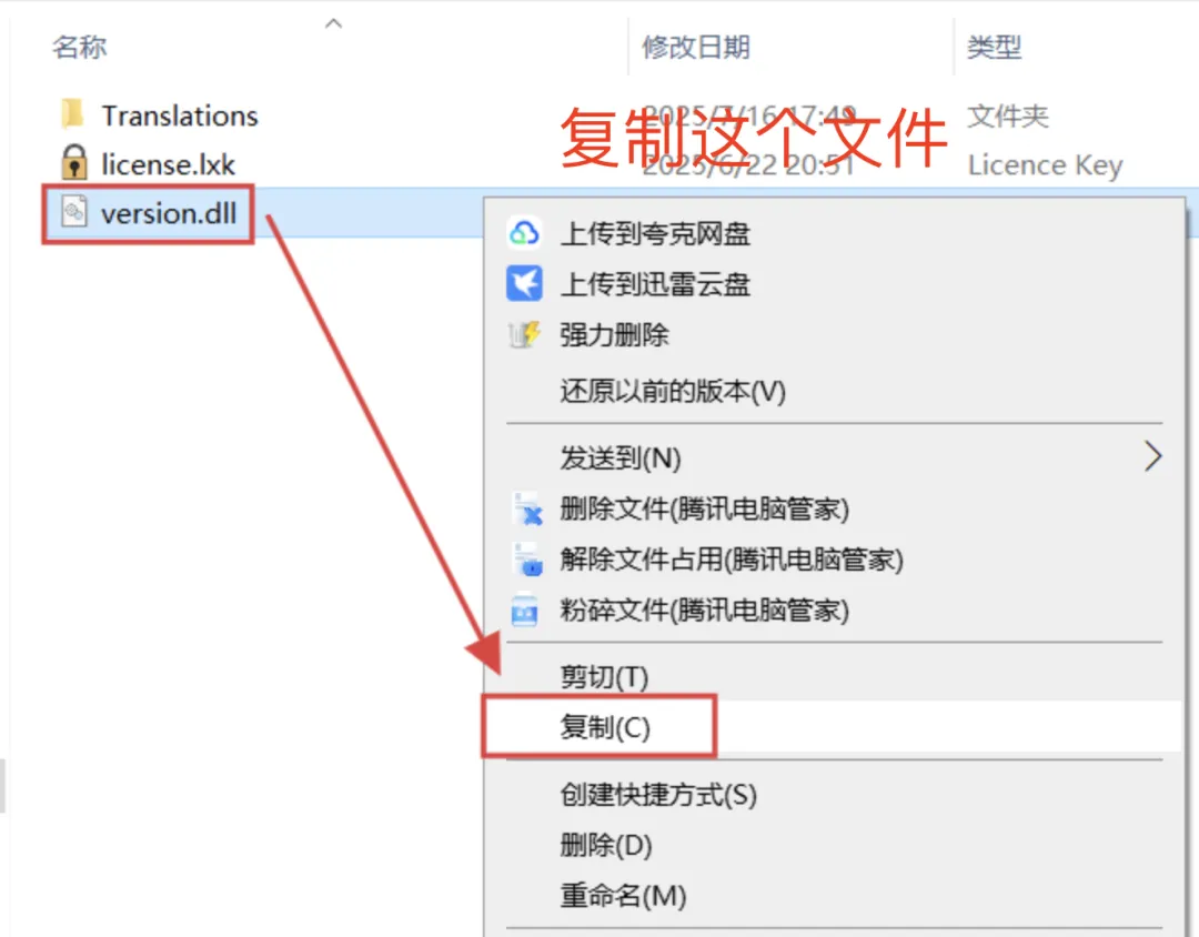 23.切换到文件夹 :Crack,选中:Translations文件夹复制