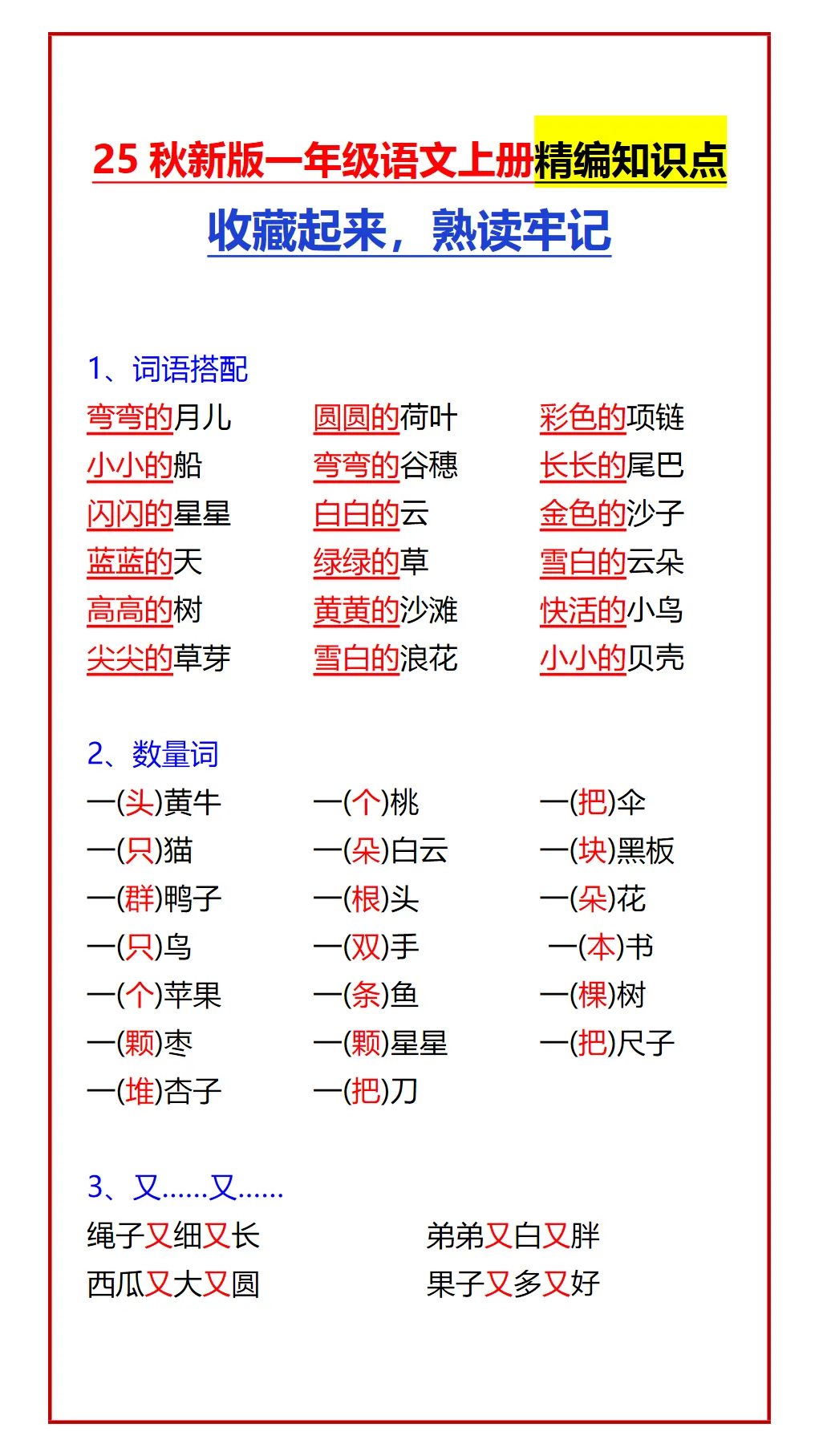 【2025秋新版】一年级语文上册精编知识点收藏起来,熟读牢记