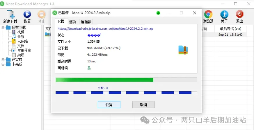 在我的测试中,NDM的下载速度与某些知名付费软件相比毫不逊色。轻松达到41MB/s,几乎将我的带宽发挥到了极致,