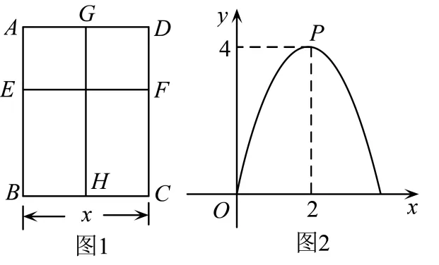 9. 如图1所示的矩形窗框的周长及其两条隔断、的总长为米,且隔断、分别与矩形的两条邻边平行,设的长为米,矩形的面积为平方米,关于的函数图像如图2,则下列说法正确的是()