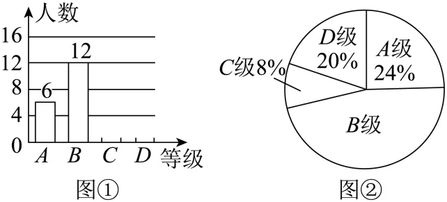 20. 某学校组织学生进行禁毒知识竞赛中,八(1)班竞赛成绩分为A、B、C、D四个等级.其中相应等级的得分依次记为100分,90分,80分,70分,现学校将八(1)班竞赛成绩整理并绘制成如下的统计图.请你根据以上提供的信息解答下列问题: