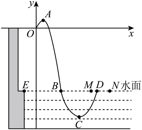 24. 如图,某跳水运动员进行10米跳台跳水训练,水面边缘点E的坐标为.运动员(将运动员看成一点)在空中运动的路线是经过原点O的抛物线.在跳某个规定动作时,运动员在空中最高处A点的坐标为,正常情况下,运动员在距水面高度5米以前,必须完成规定的翻腾、打开动作,并调整好入水姿势,否则就会失误.运动员入水后,运动路线为另一条抛物线.