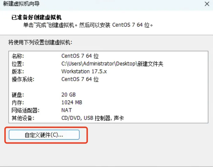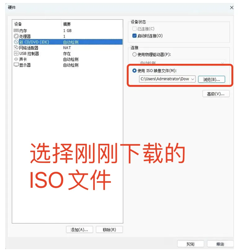 7、加载ISO镜像:点击:自定义硬件