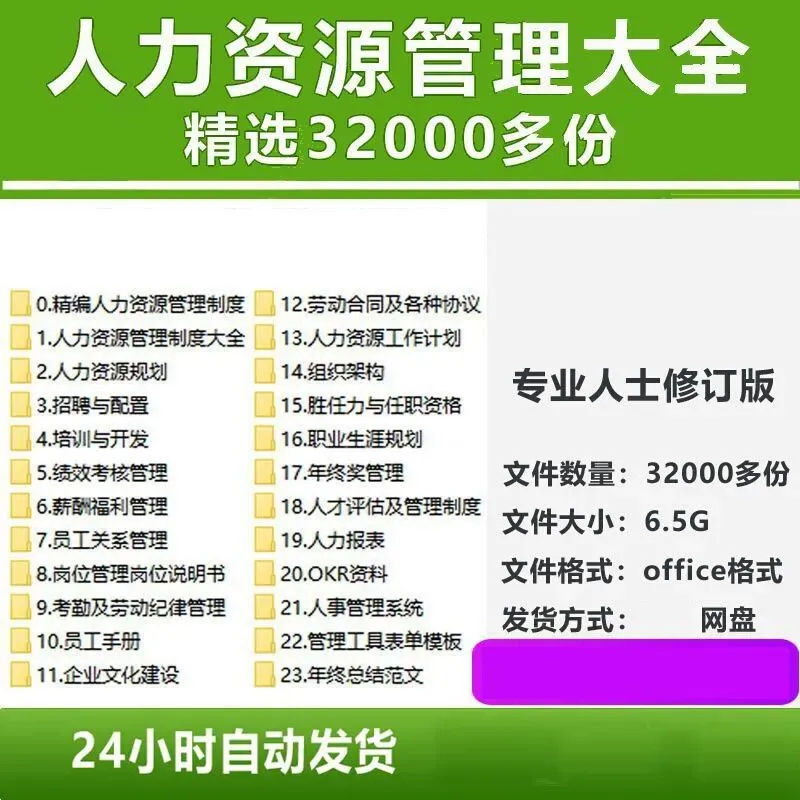 🏅032-人力资源管理制度大全公司行政系统hr人事资料包人资表格流程方案