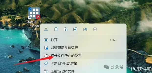 23.回到桌面,右键桌面上的【StataMP 16软件图标】,点击【打开文件所在的位置】。