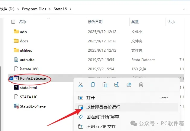 21.回到Stata 16文件夹,找到【RunAsDate】文件夹,双击打开。