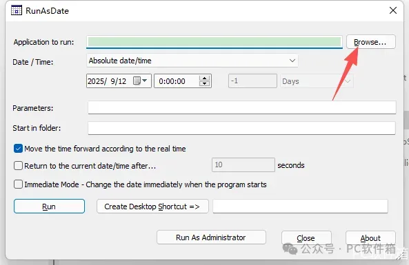 25.找到粘贴的【RunAsDate】程序,再右键选择【以管理员身份运行】它。