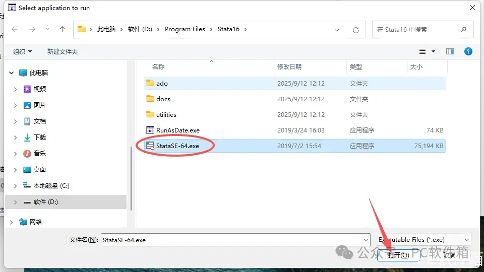 27.找到并选中【StataSE-64】,再点击【打开】。