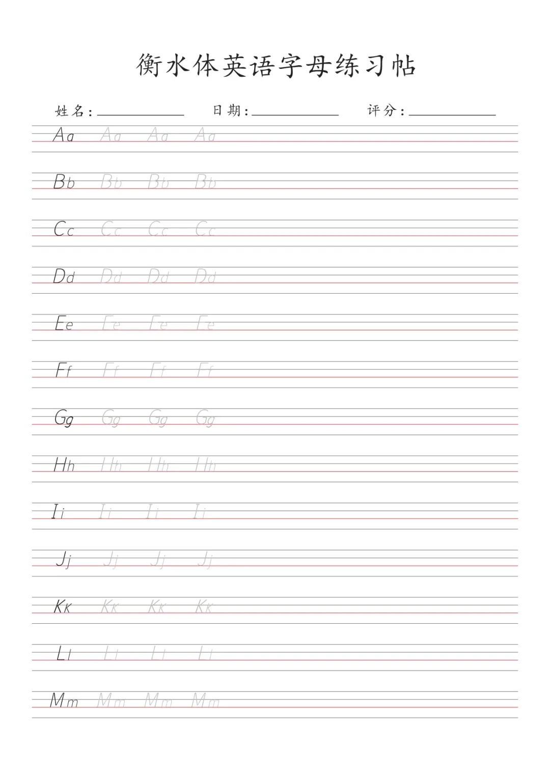 >《26个英文字母专项练习》,可免费下载