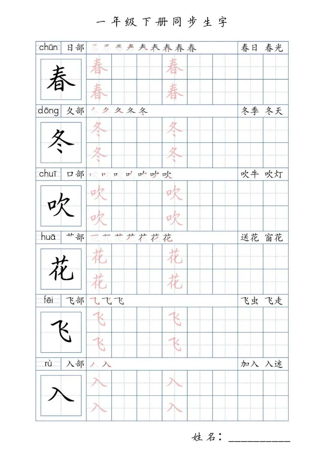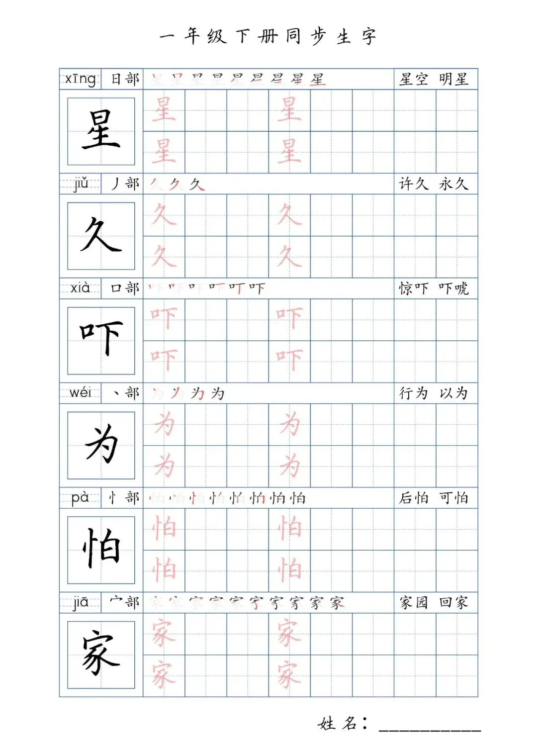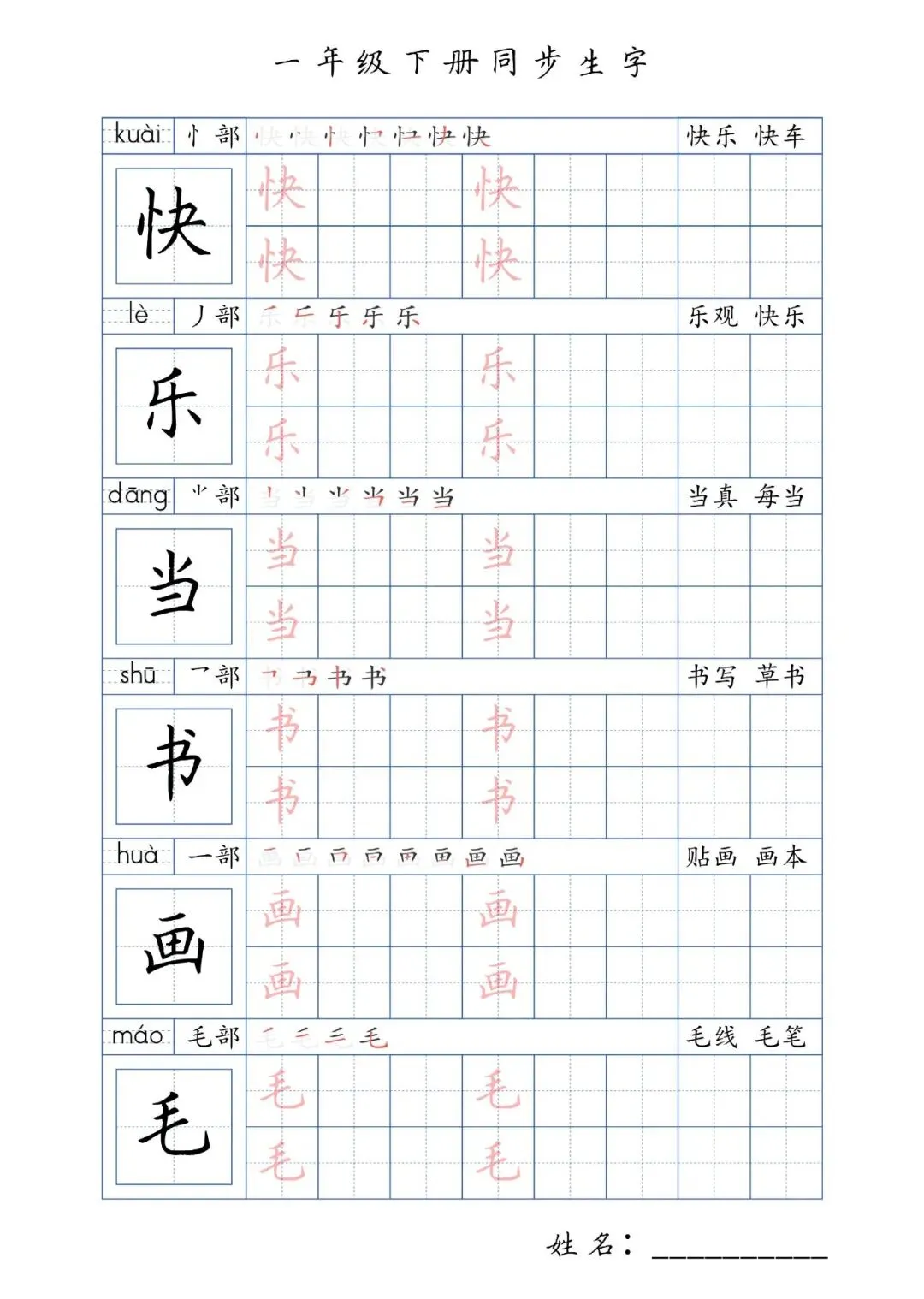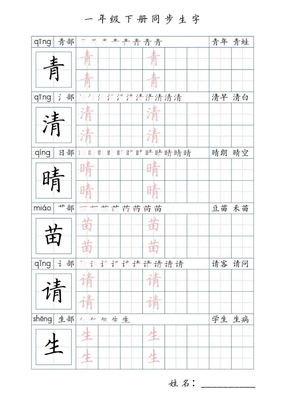 小学二年级语文下册每日句子练习单 可免费下载打印