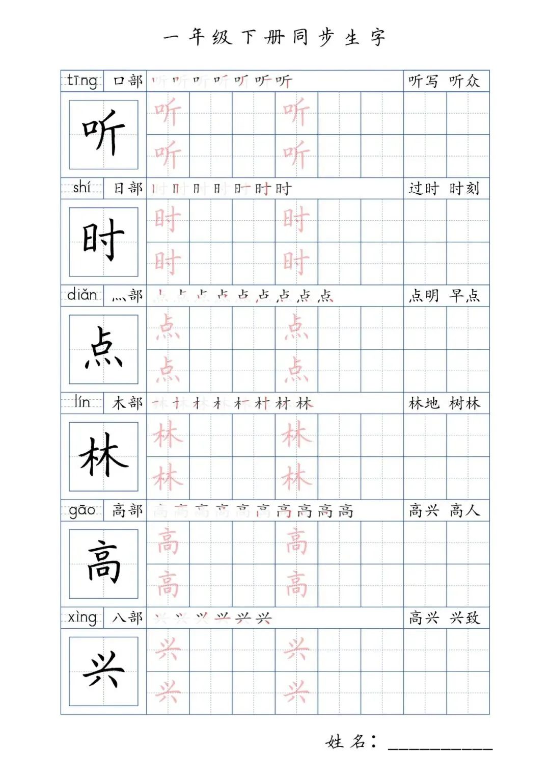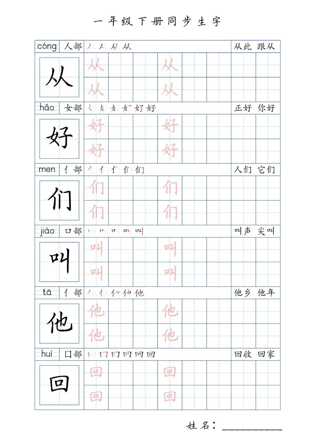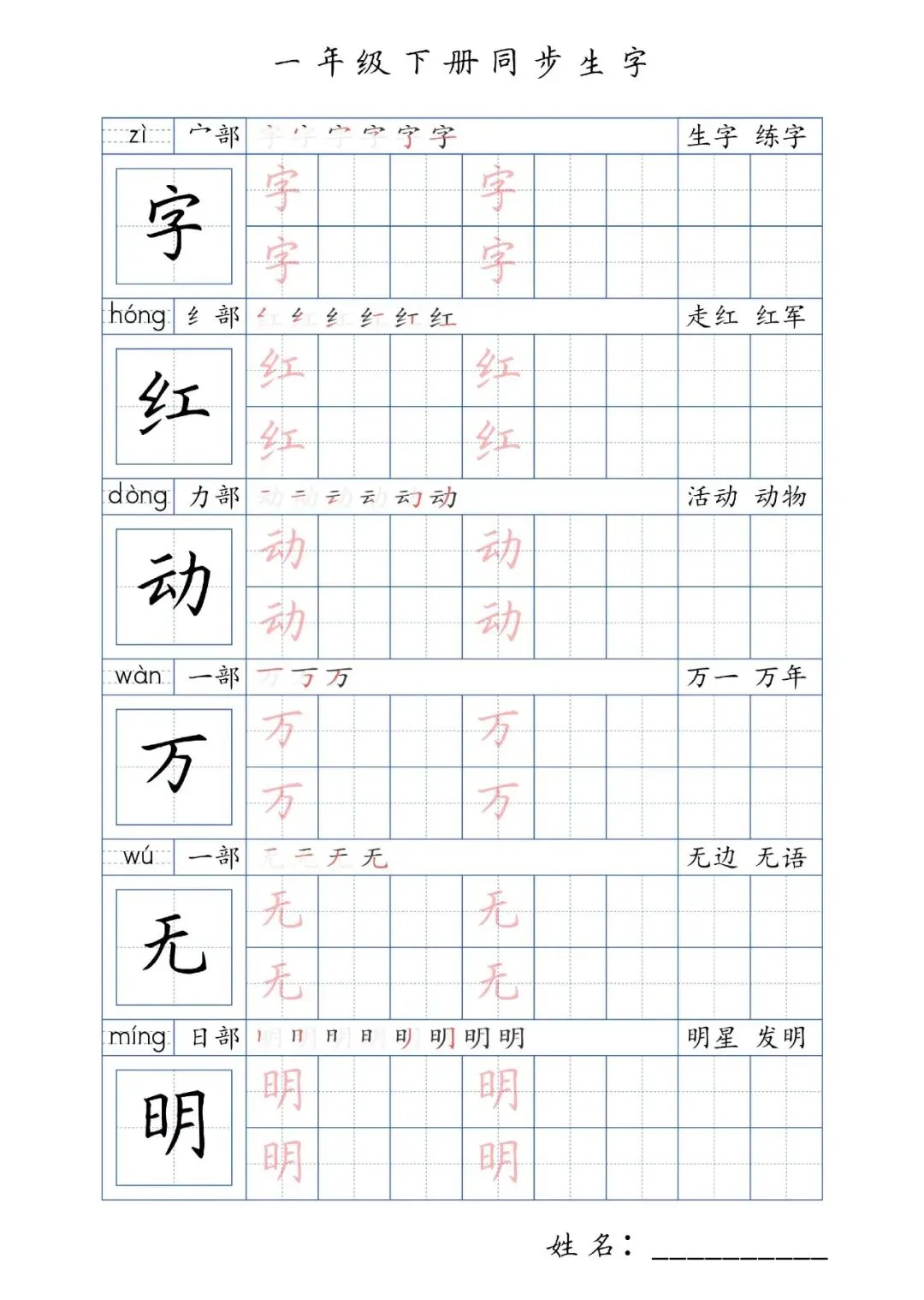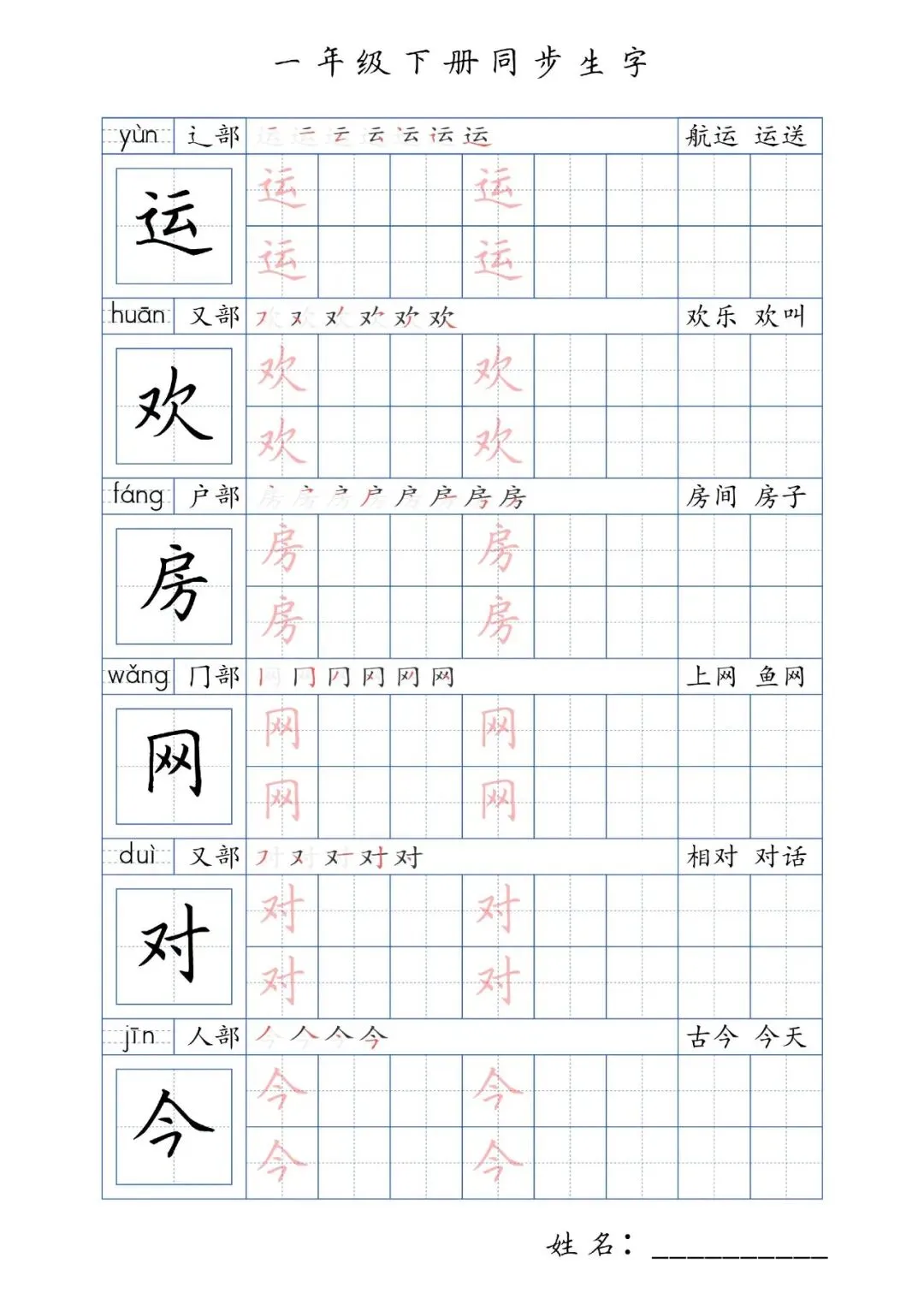 小学二年级语文下册每日句子练习单 可免费下载打印