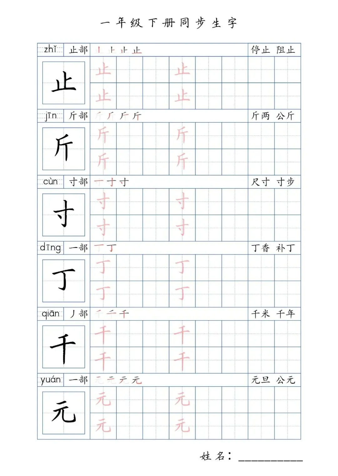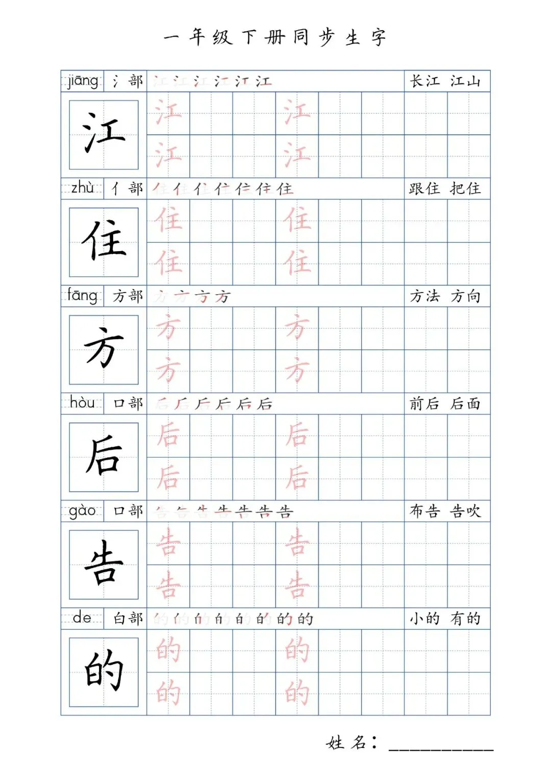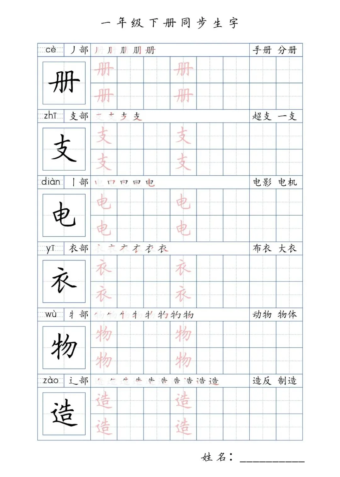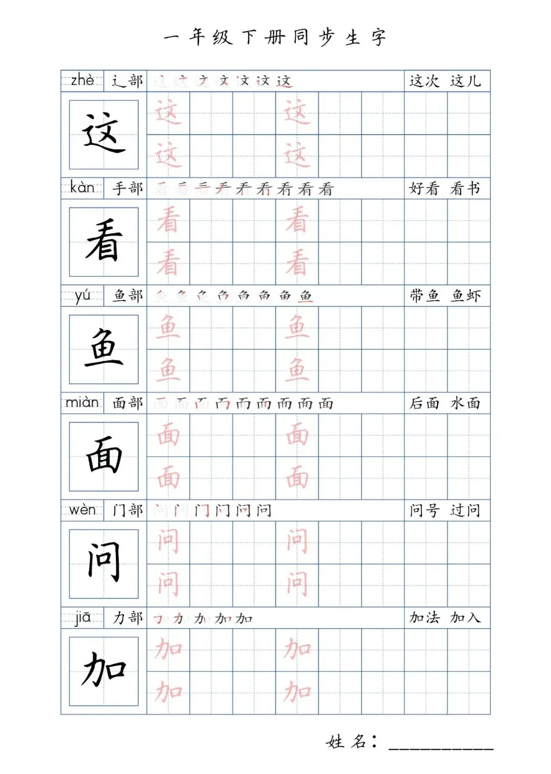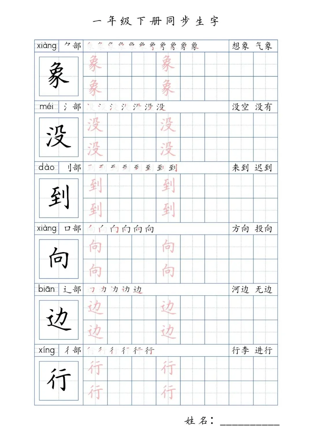 同步生字一年级下册,PDF免费下载