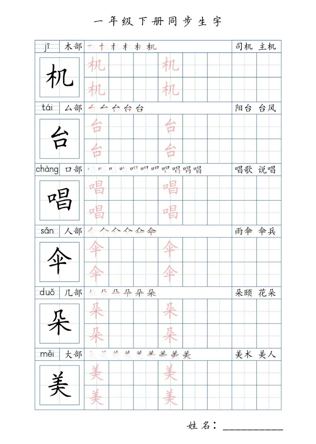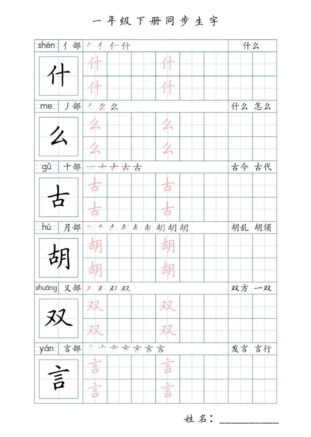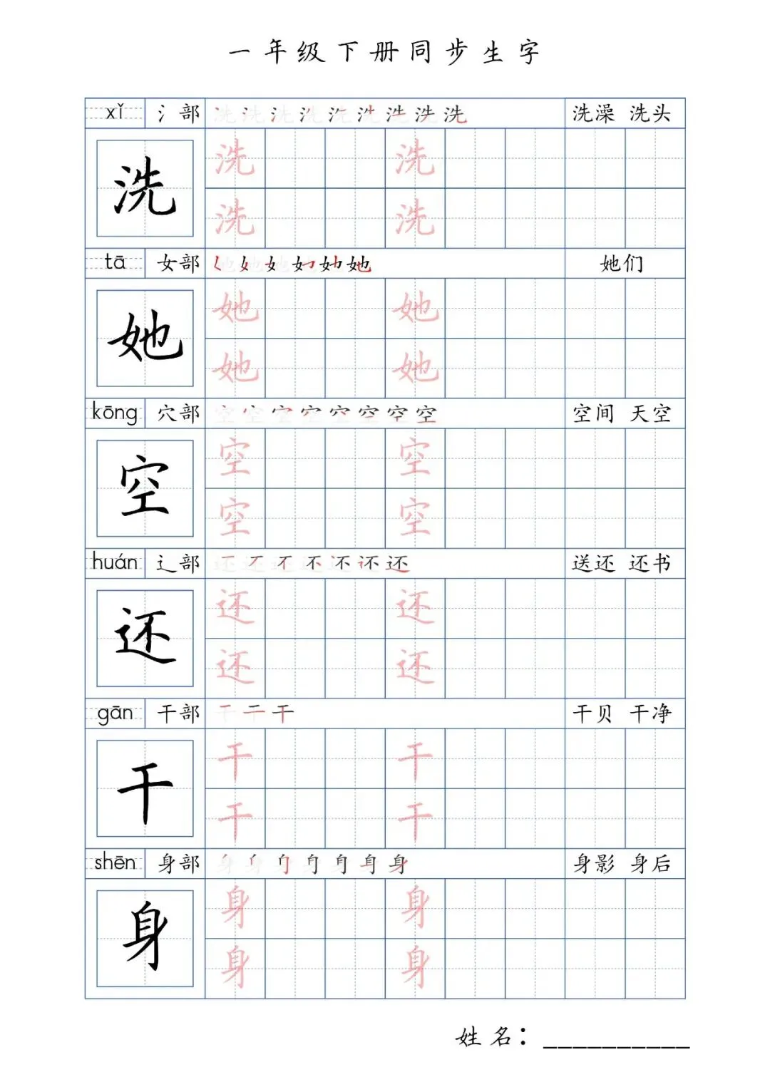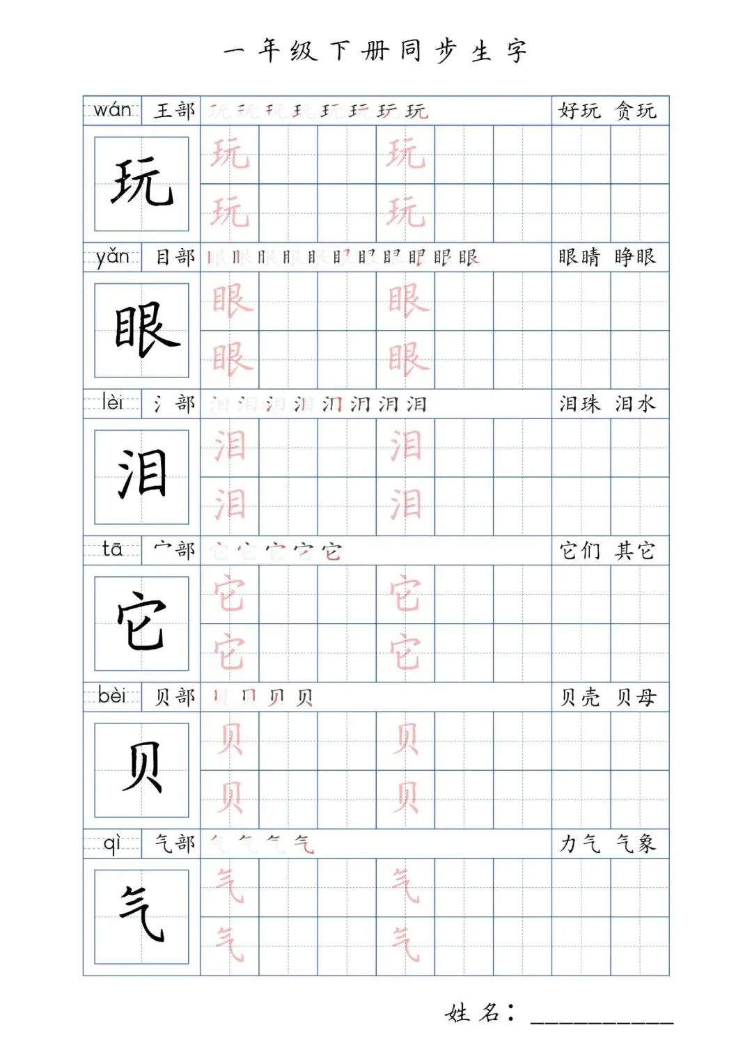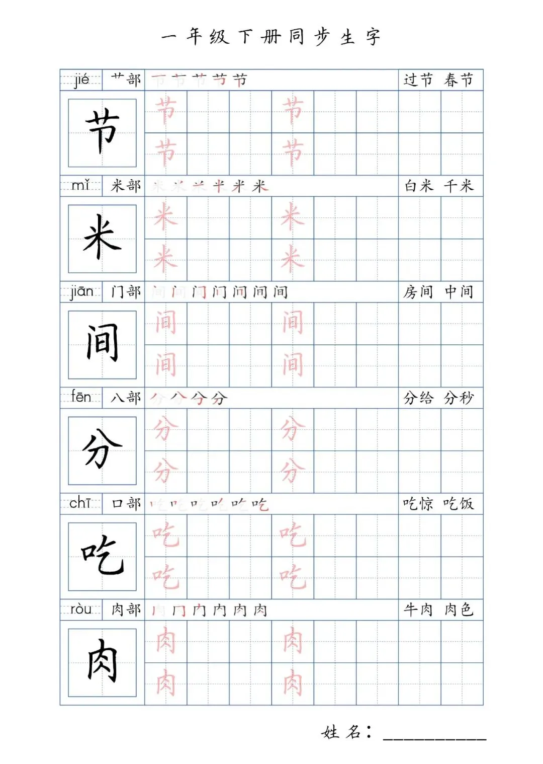 同步生字一年级下册,PDF免费下载
