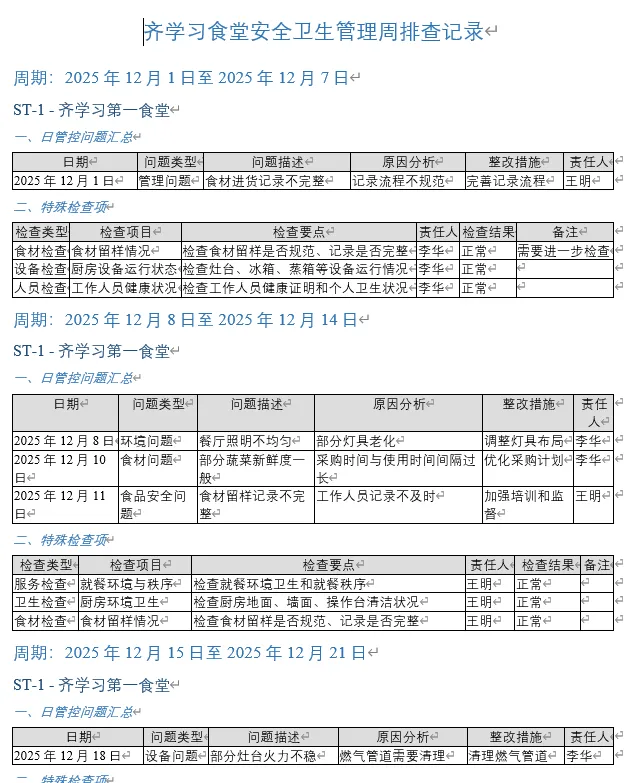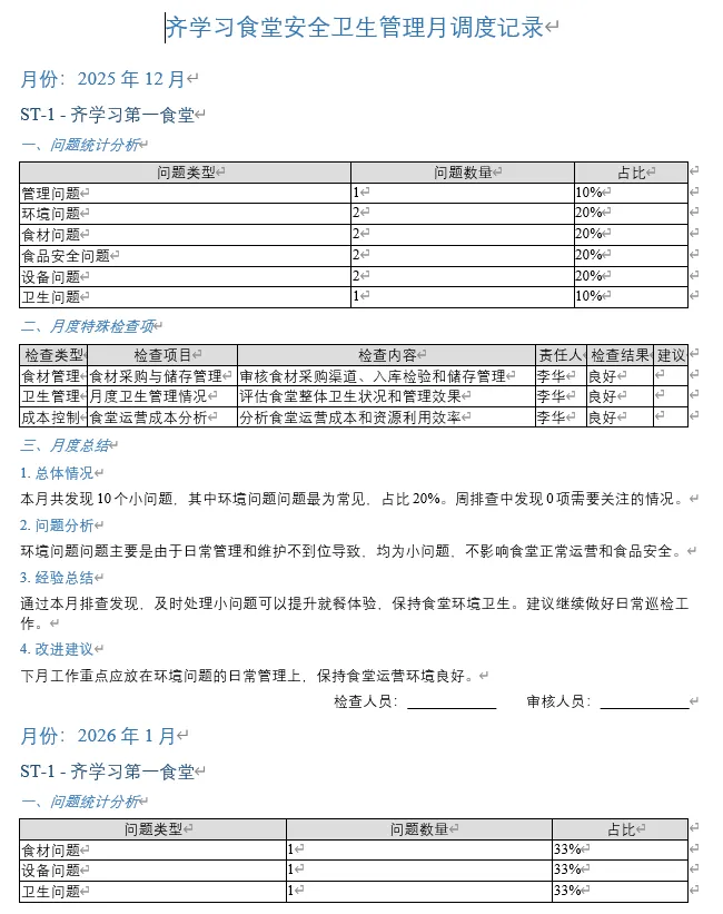 >学校食堂日管控周排查月调度记录模板附免费下载链接