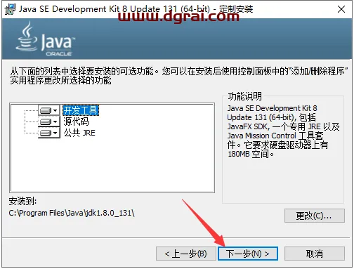 欢迎使用 1ava SE 开发工具包 8Update 131的安装向导,点击下一步